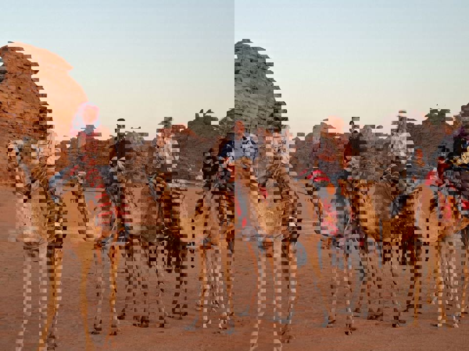 Από εκεί, το ταξίδι συνέχισε στο επιβλητικό Wadi Rum, την «Κοιλάδα του Φεγγαριού», όπου απολαύσαμε 4x4 περιήγηση στους αμμόλοφους, κάτω από τον ατελείωτο έναστρο ουρανό της ερήμου. Οι εικόνες του ηλιοβασιλέματος με τα ζεστά κόκκινα χρώματα και τα επιβλητικά βράχια θα μείνουν σίγουρα ανεξίτηλες στη μνήμη όλων μας.