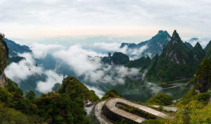 Ανεβαίνουμε στην περιοχή Yuanjiajie, με τελεφερίκ διαθέσιμο, γνωστή για τους επιβλητικούς βραχώδεις σχηματισμούς της. Εδώ θα δούμε από κοντά τα περίφημα, κινηματογραφικά βουνά γεμάτα μυστήριο που ενέπνευσαν τα τοπία πολλών δημοφιλών χολιγουντιανών παραγωγών, όπως των πασίγνωστων ταινιών Avatar, με τους κατακόρυφους πέτρινους πυλώνες να υψώνονται μέσα στην ομίχλη δημιουργώντας ένα σχεδόν εξωπραγματικό σκηνικό. Στη συνέχεια κατευθυνόμαστε προς το βουνό Tianzishan, φημισμένο για την πανοραμική θέα του. Από τα ψηλά σημεία του βουνού απολαμβάνουμε μοναδικά τοπία με αμέτρητες κορυφές, δάση και φαράγγια – μια από τις πιο φωτογραφημένες εικόνες του πάρκου. Ακολουθεί επίσκεψη στο Ten-Mile Gallery, μια γραφική διαδρομή μέσα σε κοιλάδα με βραχώδεις σχηματισμούς που θυμίζουν φυσικά γλυπτά. Η βόλτα εδώ προσφέρει πιο ήρεμο ρυθμό και τη δυνατότητα να θαυμάσουμε τη φύση από κοντά. Καθ'όλη τη διάρκεια της περιήγησής μας υπάρχουν, φυσικά, τελεφερίκ και ανελκυστήρες διαθέσιμοι που διευκολύνουν την ανάβασή μας - όπως ο ανελκυστήρας Bailong, που συγκαταλέγεται στο βιβλίο Guiness ως ο ψηλότερος εξωτερικός ανελκυστήρας στον κόσμο, κατασκευασμένος εξ' ολοκλήρου από γυαλί!