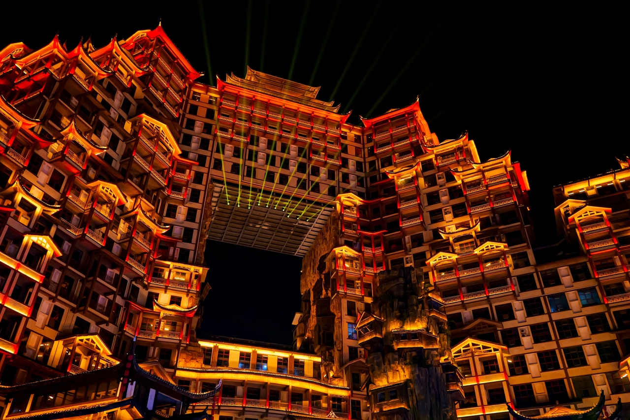 Το βράδυ, επιστροφή στην πόλη της Ζανγκτζιατζιέ και επίσκεψη στο εντυπωσιακό σύμπλεγμα κτηρίων 72 Marvelous Towers, για να απολαύσουμε τη μαγευτική νυχτερινή τους όψη. Τα φωτισμένα ξύλινα κτήρια, εμπνευσμένα από την παραδοσιακή αρχιτεκτονική της περιοχής, δημιουργούν ένα μοναδικό σκηνικό και αποτελούν ιδανικό κλείσιμο μιας γεμάτης εικόνες ημέρας. Επιστροφή στο ξενοδοχείο και διανυκτέρευση.