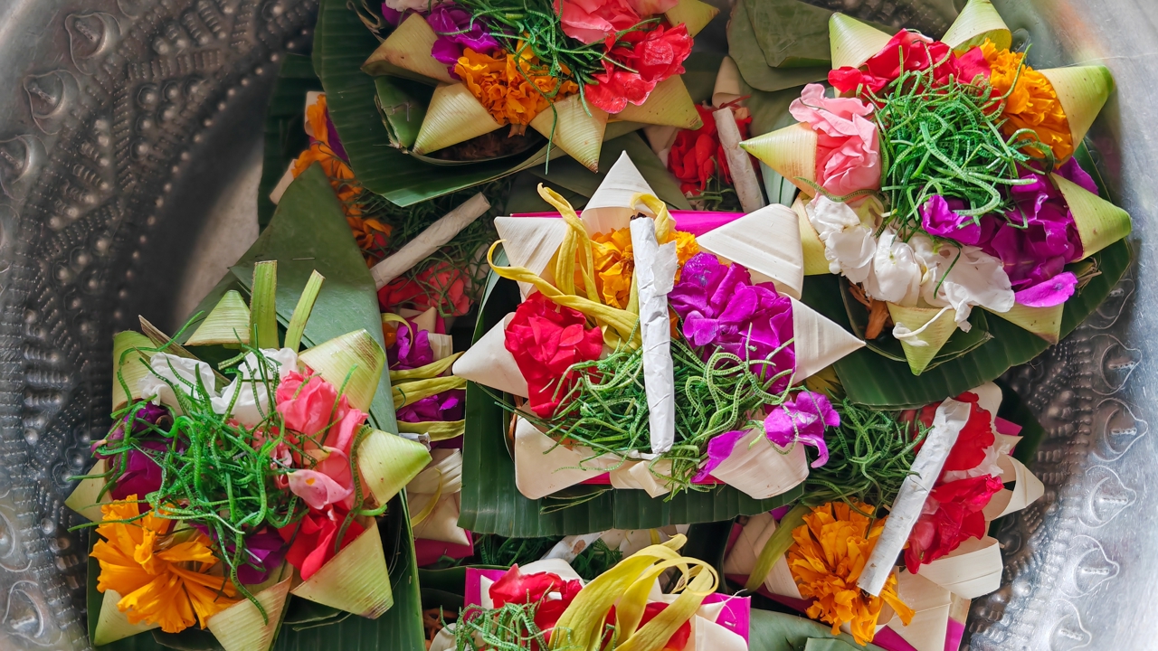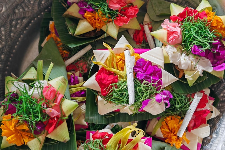 Το Μπαλί ήταν αρχικά γνωστό ως Μπαλιντουϊπά (Balidwipa), όνομα που συνδυάζει δύο λέξεις στα σανσκριτικά: το bali, δηλαδή φόρος ή θυσία, και το dwipa, δηλαδή νησί. Φυσικά, δεν πρόκειται για σύμπτωση. Η έννοια της προσφοράς και της ευγνωμοσύνης προς το θείο αποτελεί βασικό στοιχείο της καθημερινότητας των κατοίκων. Κάθε πρωί, οι ντόπιοι κατασκευάζουν μικρά, περίτεχνα καλάθια από φύλλα φοίνικα, γεμάτα λουλούδια, ρύζι και θυμίαμα — τα γνωστά canang sari — τα οποία τοποθετούν έξω από σπίτια, ναούς και καταστήματα ως προσφορά στους θεούς. Με το πέρασμα των αιώνων, το όνομα απλοποιήθηκε σε αυτό που γνωρίζουμε σήμερα: Μπαλί.