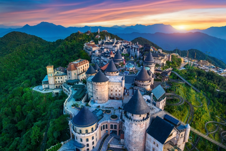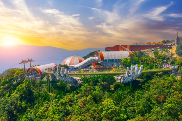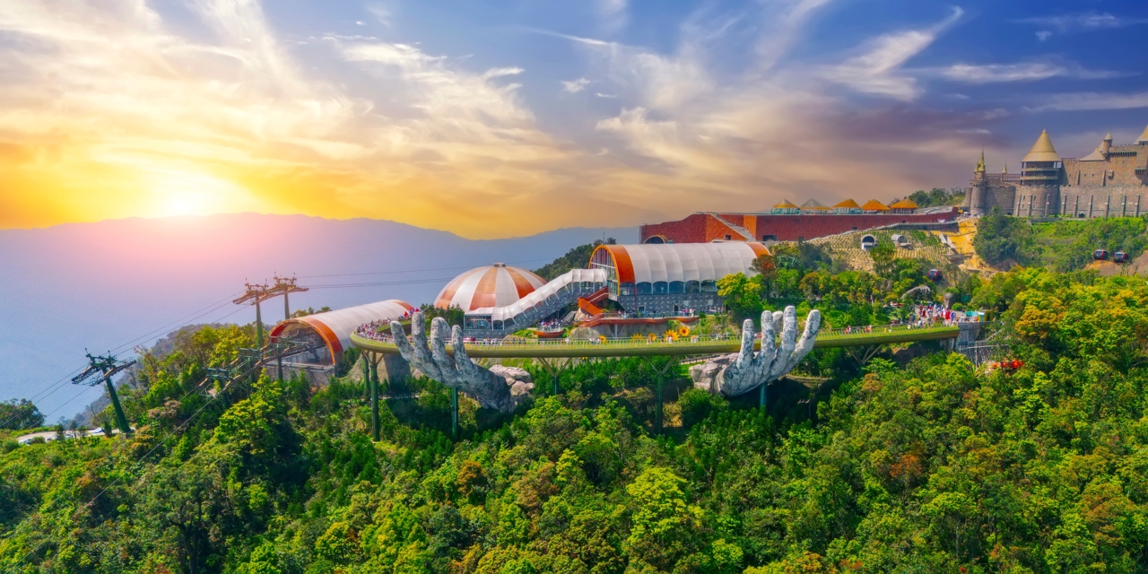 Η διαδρομή ξεκινά με την διαδρομή των τελεφερίκ, που εγκαινιάστηκαν το 2009 καταγράφοντας αμέσως ρεκόρ για το μεγαλύτερο συνεχές μήκος μονόσυρμου τελεφερίκ στον κόσμο (5.8 χλμ) στην μεγαλύτερη υψομετρική διαφορά μεταξύ σταθμών (1.300 μ.), παρουσιάζοντας μία απαράμιλλη θέα μέσα από σύννεφα και πάνω από την ζούγκλα. Πρώτος σταθμός είναι η διάσημη Χρυσή Γέφυρα- Golden Bridge, που κατασκευάστηκε το 2018 ως παγκόσμιο αρχιτεκτονικό «σύμβολο» για την προβολή της περιοχής. Επόμενος σταθμός το θεματικό πάρκο, με τους κήπους της αγάπης, τις παλιές γαλλικές βίλες, τα κελάρια κρασιού, τον 27 μέτρων Βούδα, τα γραφικά σοκάκια και τα εστιατόρια με Γαλλική φινέτσα και ένα πάρκο διασκέδασης και προβολής ταινιών.