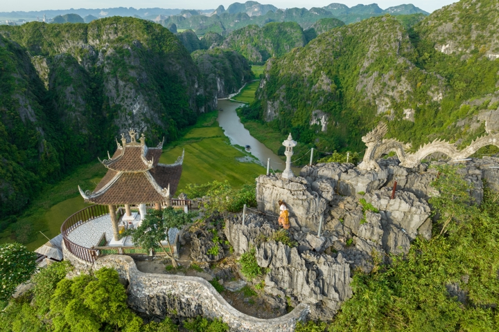 Η επαρχία Νιν Μπιν, 100 χλμ από το Ανόι, είναι γνωστή για την φυσική της ομορφιά, την πρώτη πρωτεύουσα Χοα Λου (επί δυναστείας Ντιν 968-980 μ.χ.) και γνωστή για το «Χερσαίο Χαλονγκ Μπέι» (λόγω των εντυπωσιακών ασβεστολιθικών κορυφών και των καταπράσινων κοιλάδων), προσφέρει ένα υπέροχο συνδυασμό σε μία εκδρομή κοντά από το Ανόι. Το σύμπλεγμα σπηλαίων Μούα με κύριο γνώρισμα τον λόφο που ο αυτοκράτορας απολάμβανε χορούς (χορός=μούα), για να απολαύσουμε την εκπληκτική θέα στους ορυζώνες και τα καρστικά βουνά, παρέα με τον δράκο που διακοσμεί όλο την βουνό (ένα από τα πιο φωνογραφημένα σημεία της χώρας).