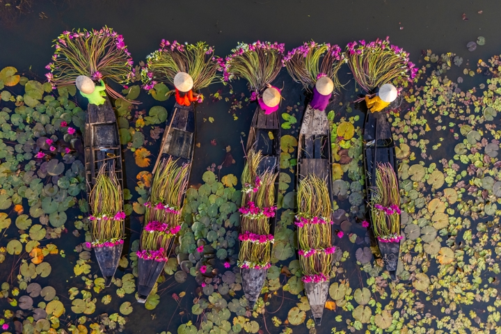 Μπαίνοντας σε μία μια βάρκα και γλιστρώντας μέσα στα μικρά κανάλια γεμάτα από φοίνικες νερού, θα ακούσετε τις φωνές από την πλωτή αγορά και τις βάρκες φορτωμένες με ανανάδες, μάνγκο και καρύδες να πλησιάζουν, για να πουλήσουν την πραμάτεια τους. Σε αυτή την αγορά όλα γίνονται πάνω στο ποτάμι: ένα χαμόγελο, μια διαπραγμάτευση, ένας καφές με συμπυκνωμένο γάλα που σου προσφέρουν από μια μικρή κουζίνα πάνω στη βάρκα.