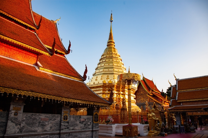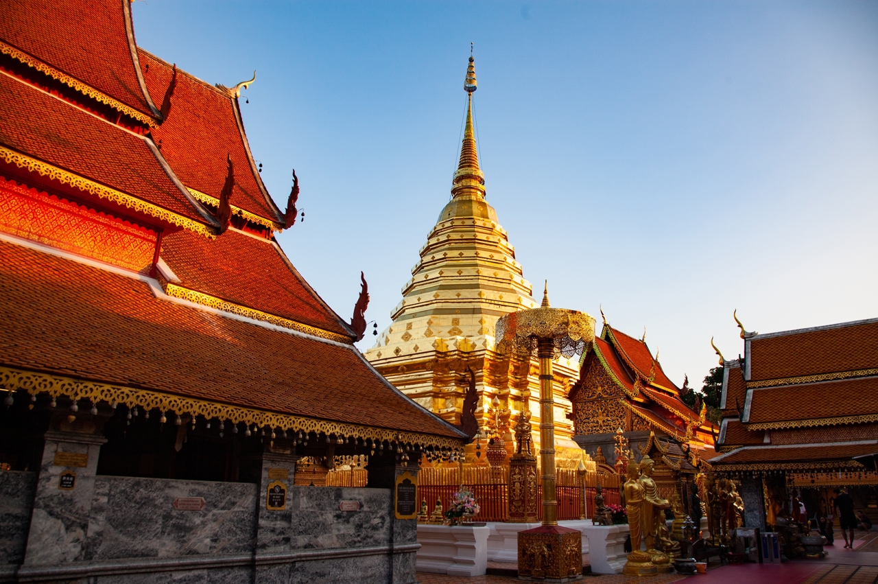 Συνεχίζουμε με επίσκεψη στη φάρμα ελεφάντων, για να έρθουμε πολύ κοντά με τα επιβλητικά θηλαστικά, θα έχουμε την ευκαιρία να τα ταΐσουμε, να μάθουμε για την καθημερινότητά τους και να τους ιππεύσουμε κάνοντας μία βόλτα στο ποτάμι της περιοχής. Θα ακολουθήσει ράφτιννγκ από μικρές σχεδίες μπαμπού ατενίζοντας την καταπράσινη ζούγκλα, τις μικρές παράκτιες κατοικίες και βλέποντας τον χώρο ξεκούρασης των ελεφάντων. Ακολουθεί η πανοραμική ξενάγηση της πόλης, βλέποντας το μνημείο των τριών βασιλιάδων και ιδρυτών του βασιλείου Λάννα, την πύλη Tha Phae, στην ανατολική πλευρά των τειχών της παλιάς πόλης, τα ερείπια του μεγάλου ναού Chedi Luang (Βασιλική Στούπα του 14ου αιώνα) και τέλος θα επισκεφθούμε το ναό Doi Suthep, τον πιο όμορφο και σημαντικότερο στην περιοχή, που βρίσκεται σε υψόμετρο 1.100 μέτρων και έχει πρόσβαση με σκάλες ή τελεφερίκ. Η Χρυσή παγόδα του διατηρεί ακόμα λείψανα του Βούδα, οι τοιχογραφίες αφηγούνται την ιστορία του πρίγκηπα που έλαβε την θεία χάρη και έγινε Βούδας, ενώ οι προσφέρουν την ιερή ευλογία τους με ένα κομποσκοίνι. Τέλος η πανοραμική θέα από το μπαλκόνι του ναού θα σας χαρίσει τις ομορφότερες φωτογραφίες με θέα όλη την παλιά πόλη. Δείπνο θα δοθεί με τον παραδοσιακό τρόπο της περιοχής, παρακολουθώντας μουσική και χορούς Καντόκε, καθήμενοι στο πάτωμα, δοκιμάζοντας την βόρεια κουζίνα σε τραπέζια μπαμπού και απολαμβάνοντας την αυθεντική εμπειρία του στιλ Λάννα, ενώ παρακολουθείτε την πολιτιστική επίδειξη, με κομψούς χορούς, ζωντανή μουσική και παραδοσιακά έθιμα.
