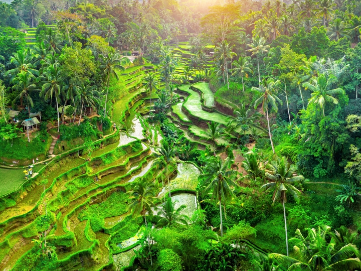 Η πρωινή εκδρομή μας θα έχει πρώτο σταθμό το 27 στρεμμάτων δάσος με 340 πιθήκους, γνωστούς και ως Μακάκες με μακριά ουρά. Στην γαλήνια ατμόσφαιρα του δάσους πέραν των 4 ομάδων μαϊμούδων, θα βρείτε και δύο ναούς ο ένας εκ των οποίων στεγάζει και την «Αγία Πηγή». Θα συνεχίσουμε με τους διάσημους ορυζώνες Τεγαλαλάνγκ (μέρος του πολιτιστικού τοπίου του Μπαλί και μνημείο παγκόσμιας κληρονομιάς από την UNESCO), για να θαυμάσουμε το τοπίο των λαξευμένων βουνών, με τα σμαραγδένια πράσινα χωράφια που καλλιεργούνται από ντόπιους αγρότες, ενώ συνεχίζουν να χρησιμοποιούν το ίδιο σύστημα άρδευσης από τον όγδοο αιώνα. (Το σημείο θεωρείται από τους επισκέπτες το ομορφότερο φωτογραφικό σποτ του νησιού). Επόμενη στάση μας θα είναι ο ναός Tirta Empoul, με τις 30 πηγές ιερού νερού που δημιουργήθηκαν από τον θεό Ίντρα για εξαγνισμό και διατήρηση νεότητας. Προετοιμαστείτε και εσείς όπως θέλει η παράδοση, να εξαγνιστείτε από το ιερό νερό!