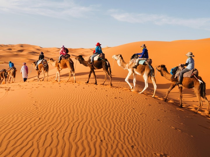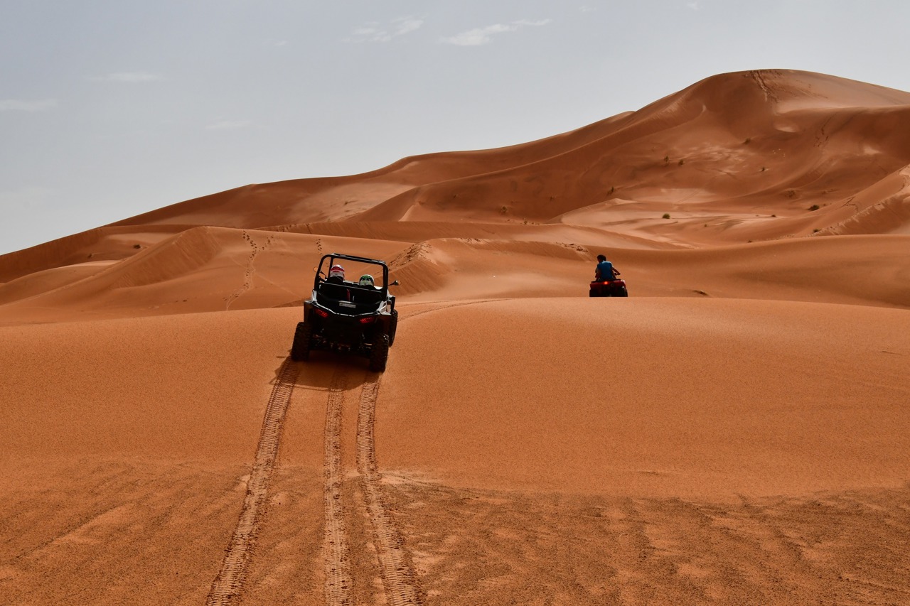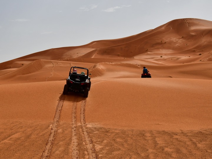 Το ξύπνημά μας σήμερα θα είναι πολύ πρωϊνό, μιας και πρόκειται να βιώσουμε μια μοναδική εμπειρία! Με ειδικά διαμορφωμένα οχήματα τύπου jeep 4x4, θα αναχωρήσουμε για τους αμμόλοφους της Μερζούγκα, από όπου θα απολαύσουμε την ανατολή του ηλίου. Το θέαμα κόβει πραγματικά την ανάσα, μιας και η κόκκινη άμμος της ερήμου μοιάζει πυρπολημένη.