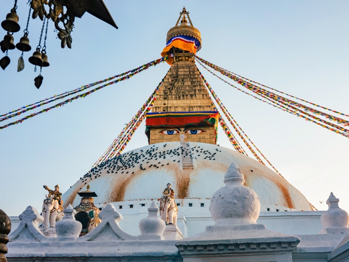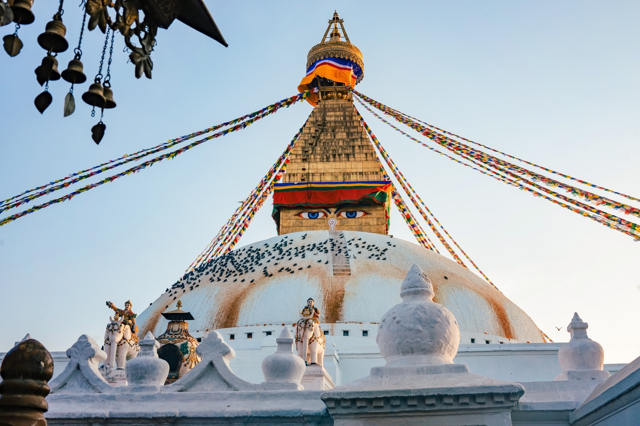 Σειρά έχουν οι επιβλητικές και φημισμένες στούπες του Κατμαντού. Θα επισκεφτούμε τη στούπα (βουδιστικό ναό) Boudhanath, έναν από τους μεγαλύτερους βουδιστικούς ναούς του κόσμου και σημαντικό κέντρο του Θιβετιανού Βουδισμού, όπως και τον ναό Pashupatinath στις όχθες του ιερού ποταμού Bagmati, ναό αφιερωμένο στον θεό Σίβα. Αφού απολαύσουμε το μεσημεριανό μας, θα ανηφορίσουμε προς τη στούπα Swayambhunath, γνωστή και ως «Ναός των Μαϊμούδων», για να απολαύσουμε την πανοραμική θέα της κοιλάδας του Κατμαντού. Διανυκτέρευση στο ξενοδοχείο μας.