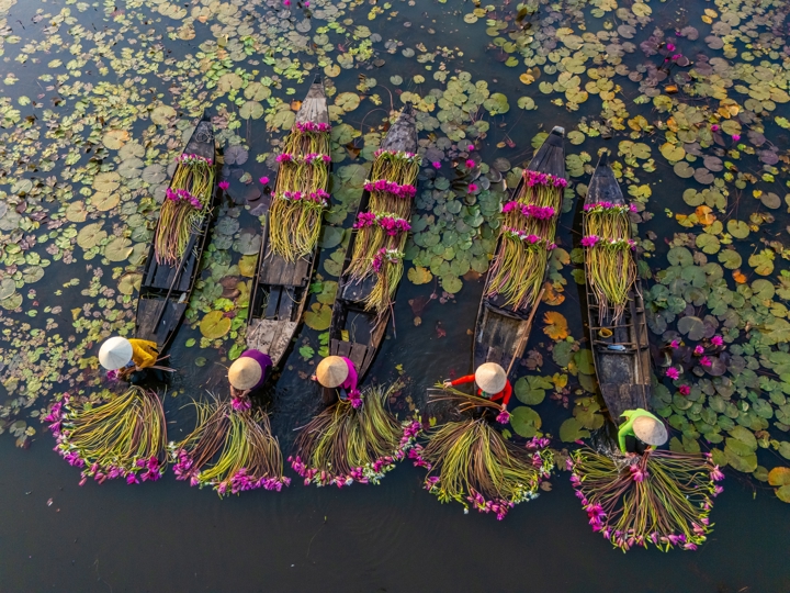 Έχοντας προβλέψει να έχουμε σε ένα σακίδιο μόνο τα αναγκαία για δύο ημέρες, θα ακολουθήσουμε την διαδρομή μέσα από το Δέλτα του Κόκκινου Ποταμού, για να φτάσουμε στο θεαματικότερο φυσικό μνημείο παγκόσμιας κληρονομιάς, τον περίφημο «Κόλπο του Κατερχόμενου Δράκου» Χα Λονγκ. Καταπράσινοι ασβεστολιθικοί βράχοι και εντυπωσιακά σπήλαια συμπληρώνουν μοναδικά το τοπίο, προσφέροντας συναρπαστικές εικόνες.