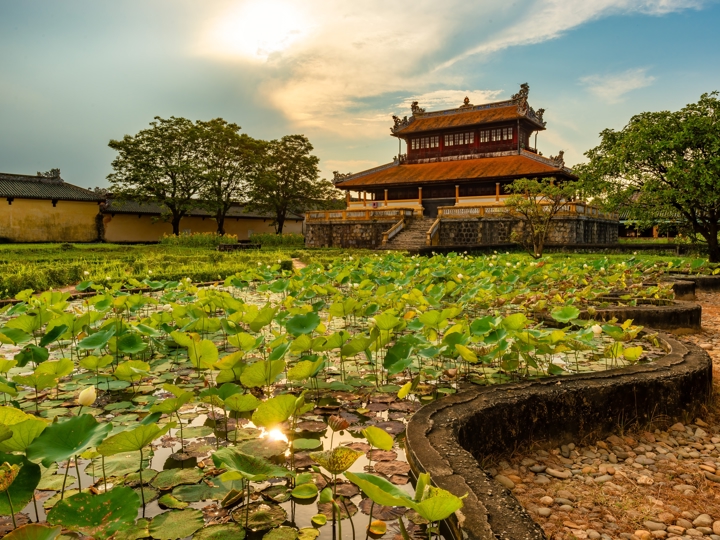 Σήμερα θα έχουμε την ευκαιρία να ξεναγηθούμε στον πιο κομφουκιανό τάφο του δεύτερου και πιο αγαπητού αυτοκράτορα Μιν Μανγκ. Εδώ κυριαρχεί η τάξη, η συμμετρία και η αρμονία, χαρίζοντας στους επισκέπτες ένα φυσικό τοπίο γεμάτο λίμνες, λόφους και κανάλια-ιδανικό για περπάτημα και φωτογράφηση σε ένα φιλοσοφικό κήπο. Στη συνέχεια θα επισκεφθούμε με ηλεκτρικά αμαξίδια (για περισσότερη άνεση), την αρχαία οχυρωμένη ακρόπολη και πρώην ανάκτορο (που θυμίζει την απαγορευμένη πόλη του Πεκίνου) στις όχθες του ποταμού των αρωμάτων. Θα ακολουθήσει η επίσκεψή μας στο πρόσφατα ανακαινισμένο Κιεν Τρανγκ, ένα μεγαλοπρεπές παλάτι της δυναστείας Νγκουέν. Θα ακολουθήσει ένα Αυτοκρατορικό γεύμα με στολές, για να χαλαρώσουμε και να αισθανθούμε και εμείς βασιλιάδες.